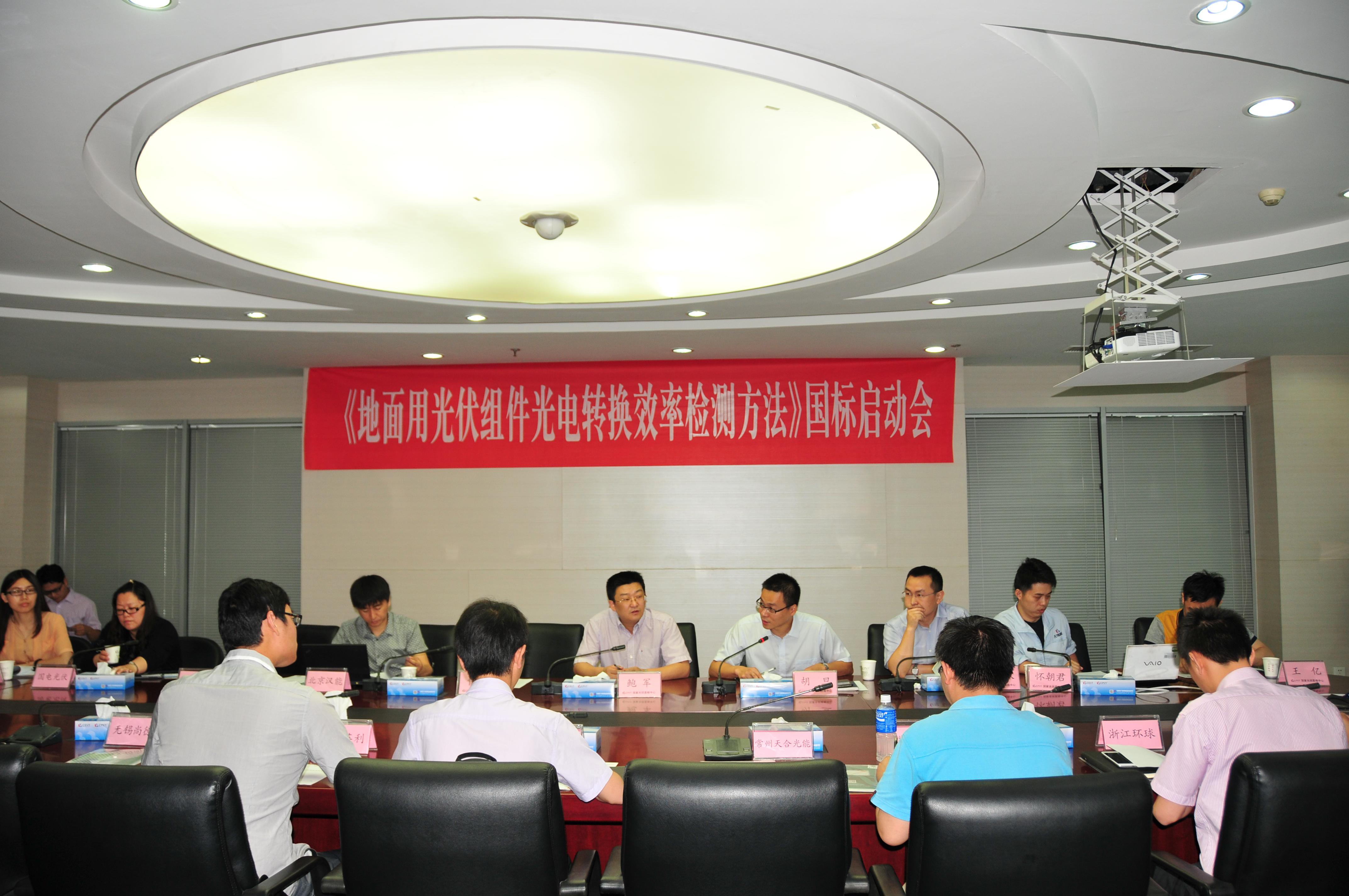 2014年6月5日,标准《地面用光伏组件光电转换效率检测方法》启动会在太阳能光伏产品质量监督检验中心(CPVT)顺利召开。来自能源、阿特斯、南京中电、常州天合光能、中节能、国电光伏、福建计量院等18家企业和相关单位的20余名专家和代表出席了会议。